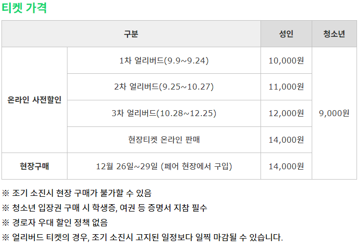 사전등록을 해서 유로 들어갈 수 있다. 가격은 아래와 같다.